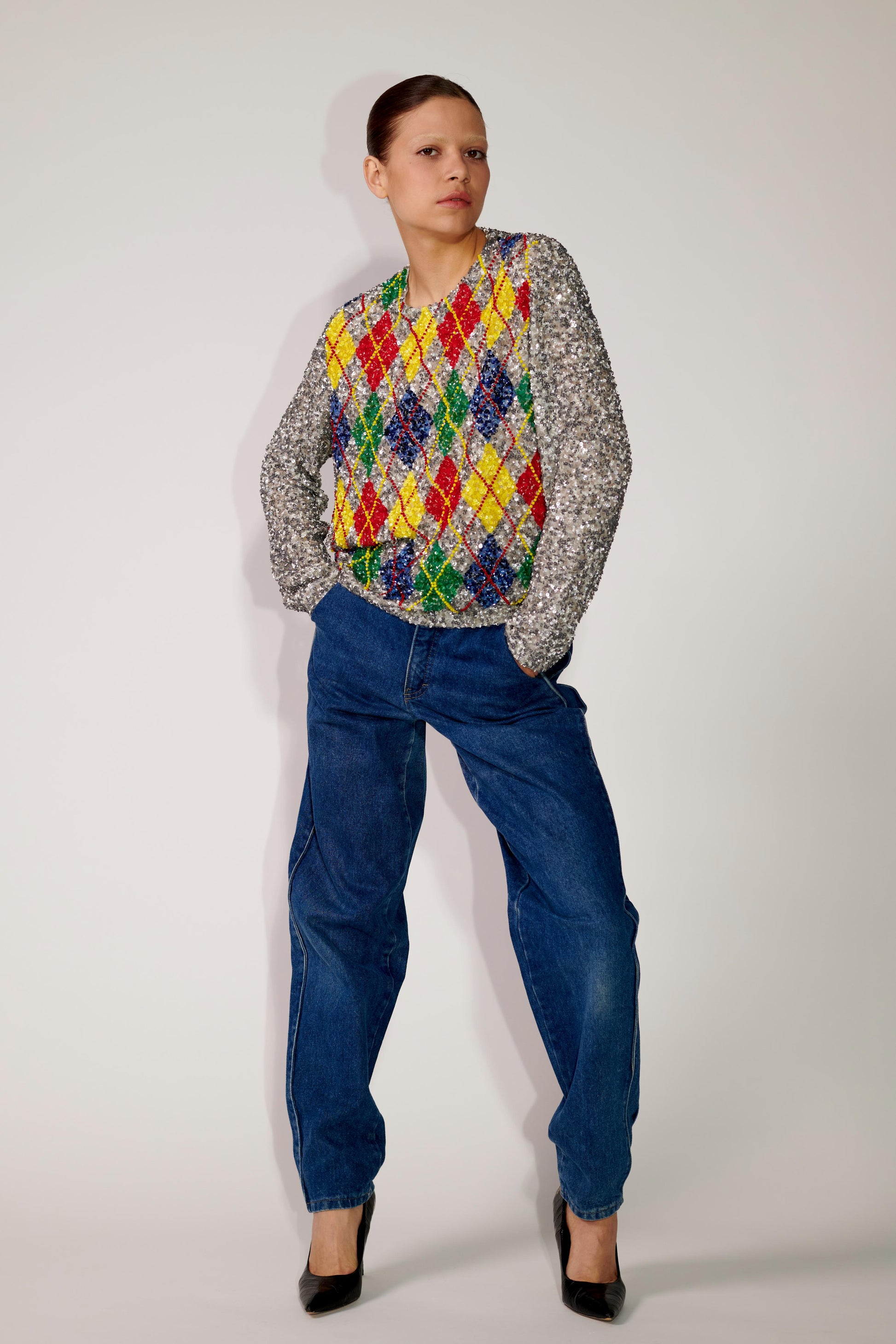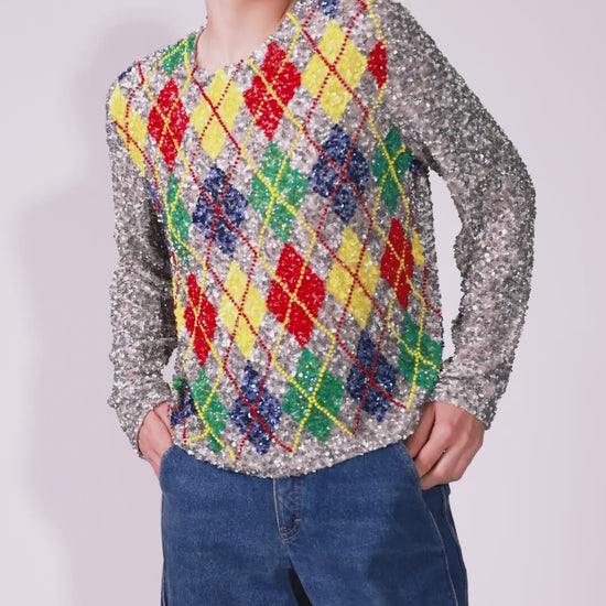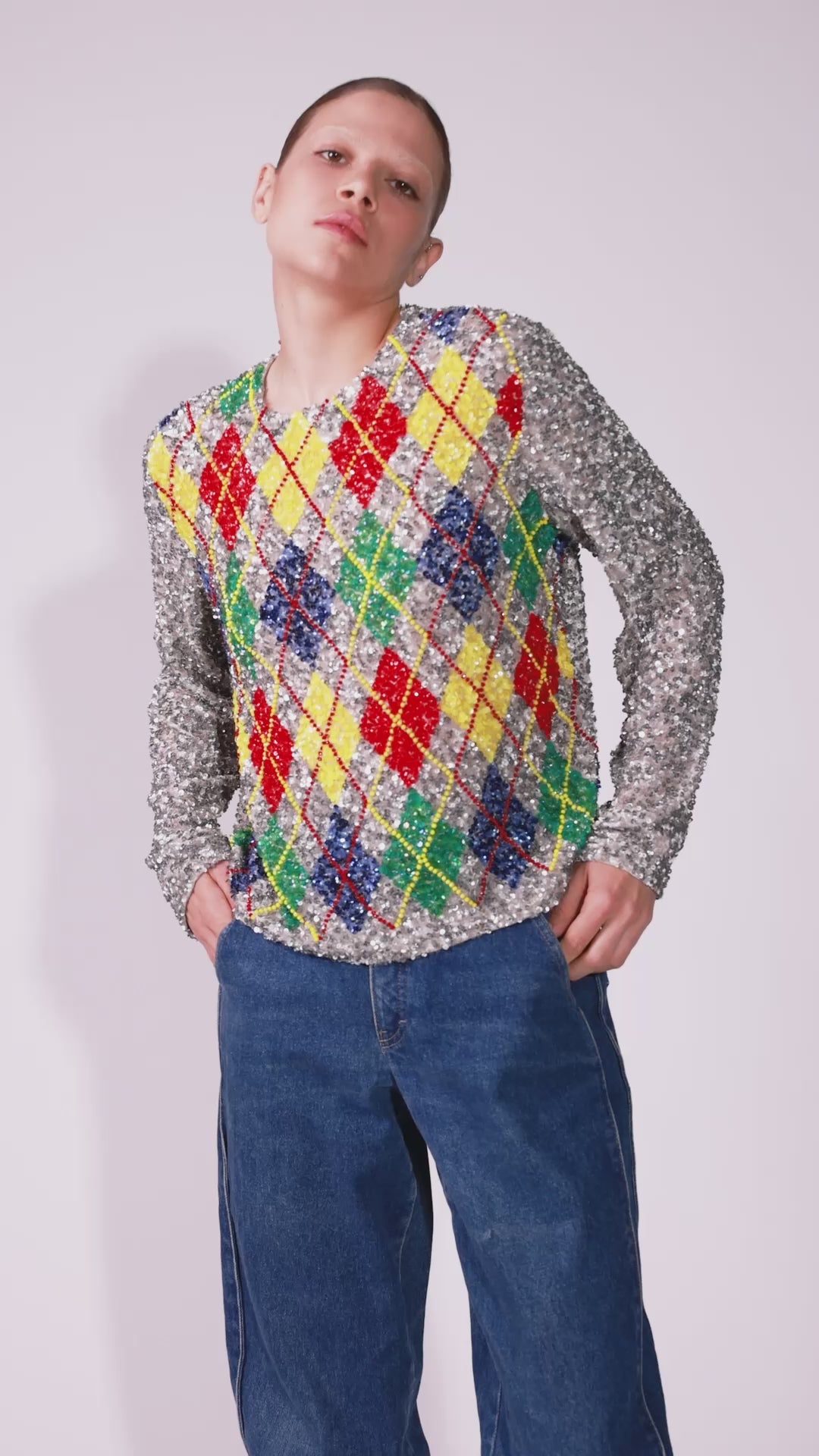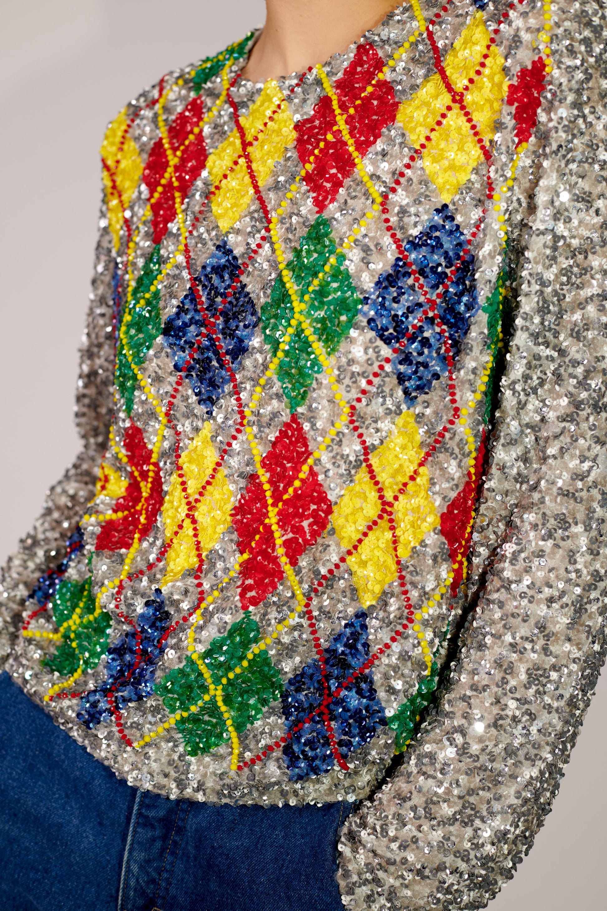 A playful take on a heritage classic pattern, this hand-embellished sequined top is perfect paired with denim for everyday fun or tailoring for a contemporary evening look.
