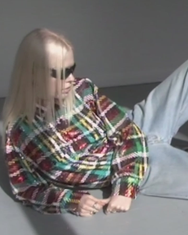 This oversize tartan style is fully hand embroidered in sequins to mimic traditional flannel shirting.