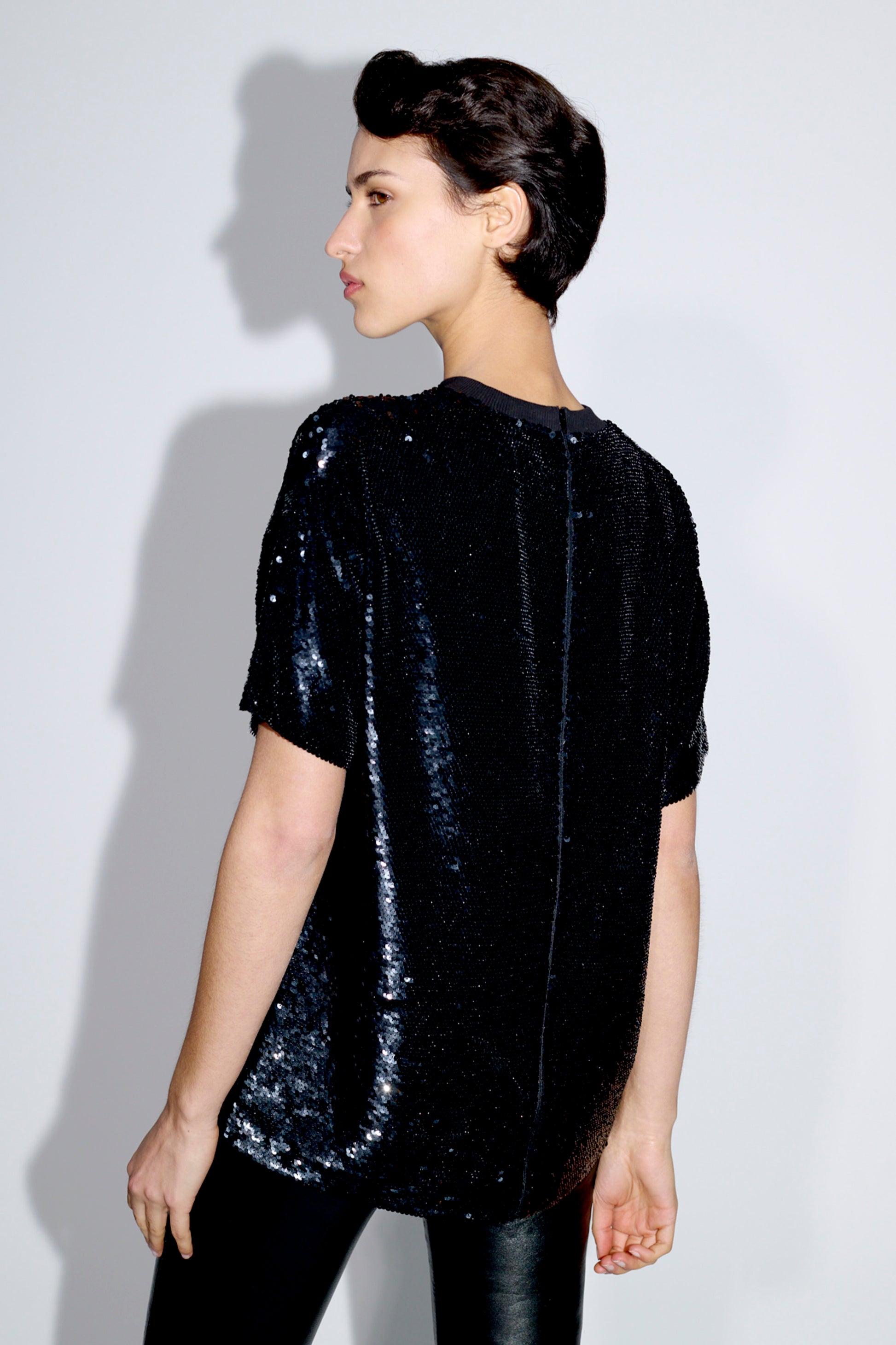 The WOW WHAT A SHIT SHOW slogan tee from Ashish’s AW25 LFW runway collection delivers tongue-in-cheek commentary with signature sparkle. Hand-embroidered in holographic silver sequins over a base of black paillettes, it puts the hot mess into messaging.